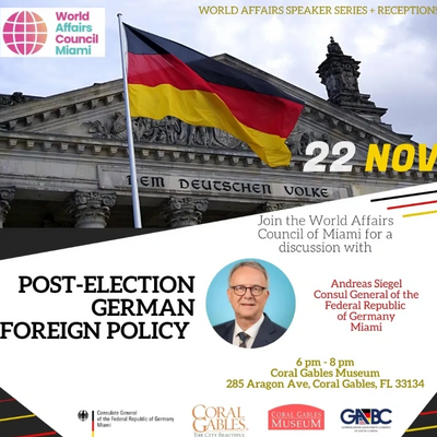 We thank Andreas Siegel, Consul General of the Federal Republic of Germany in Miami, for an informative briefing on post-election German foreign policy!